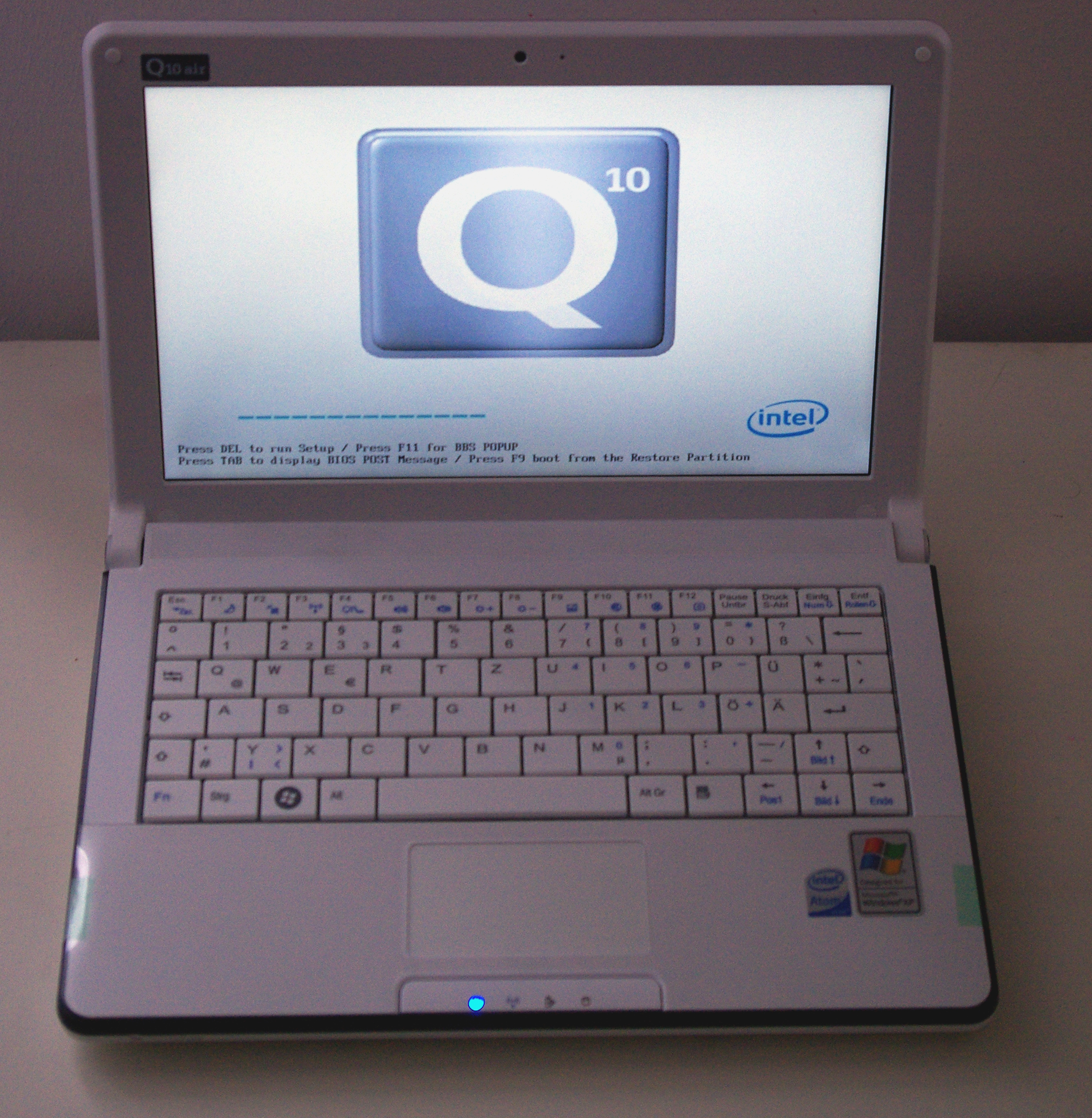 Sehr angenehm ist die nur minimale Geräuschbelästigung im Betrieb des Netbooks, die durch den Silent Mode noch gedämpft werden kann. Dabei wird offenbar die Leistung des Prozessors gedrosselt, was zu einem geringeren Wärmebedarf und letztlich zu einer Reduzierung der Lüftergeräusche führt. Bedingt durch die Bauart wird das Q10 air auf der vorderen Unterseite bei heftigen Festplattenzugriffen spürbar warm, von echter Hitze kann aber nicht die Rede sein. Wichtig ist in diesem Zusammenhang der Hinweis, dass die Kühlschlitze nicht verdeckt werden sollten, um ein dauerhaftes Überleben des Geräts sicherzustellen. Gerade beim Verwenden im Bett sollte man daran denken.