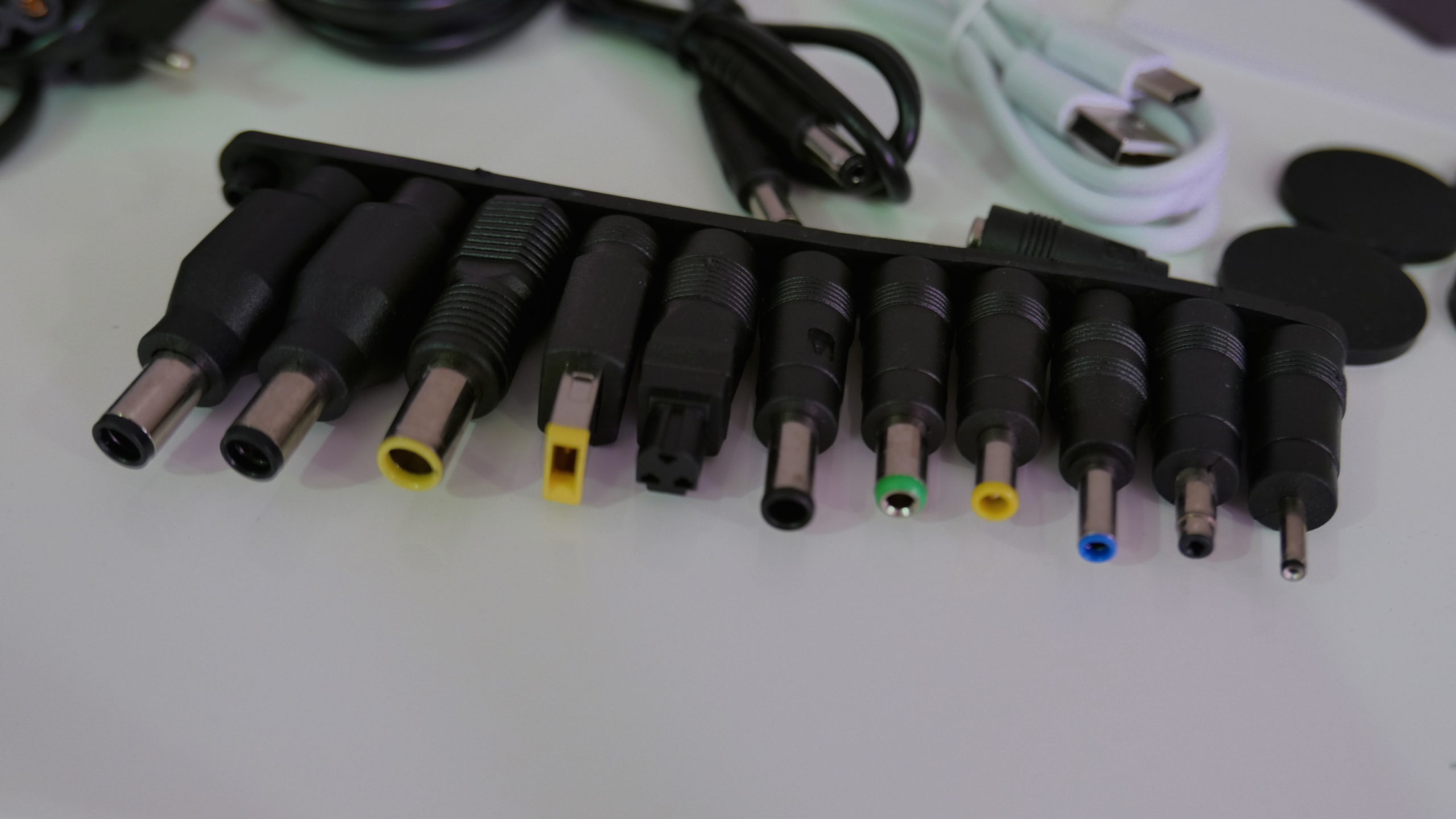 Doch wie sieht es aus, wenn man „mehr Power“ braucht und leistungshungrige Geräte – wie etwa einen Laptop – mit Saft versorgen möchte, ohne dass eine Steckdose in der Nähe ist? Dann wird es unter Umständen kompliziert, denn hier gibt es nur wenige Speicherbatterien, die genügend Kapazität mitbringen. Eine solche hat der dänische Zubehörspezialist Sandberg im Programm. Verkauft wird sie unter der Bezeichnung „Powerbank 20000 for Laptop“ und hat einen Straßenpreis von gut 100 Euro. Das mag auf den ersten Blick viel Geld sein, aber wenn man sich die Leistungsdaten und nicht zuletzt die Vielzahl an mitgelieferten Adaptern ansieht, wird man bemerken, dass es sich hier um eine wirklich gute Investition handelt. Auch ein Micro-USB-Kabel ist vorhanden.